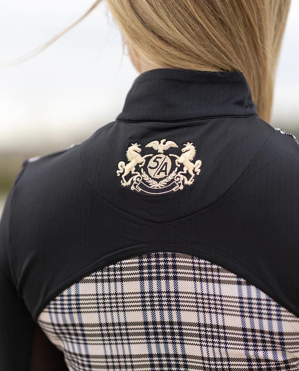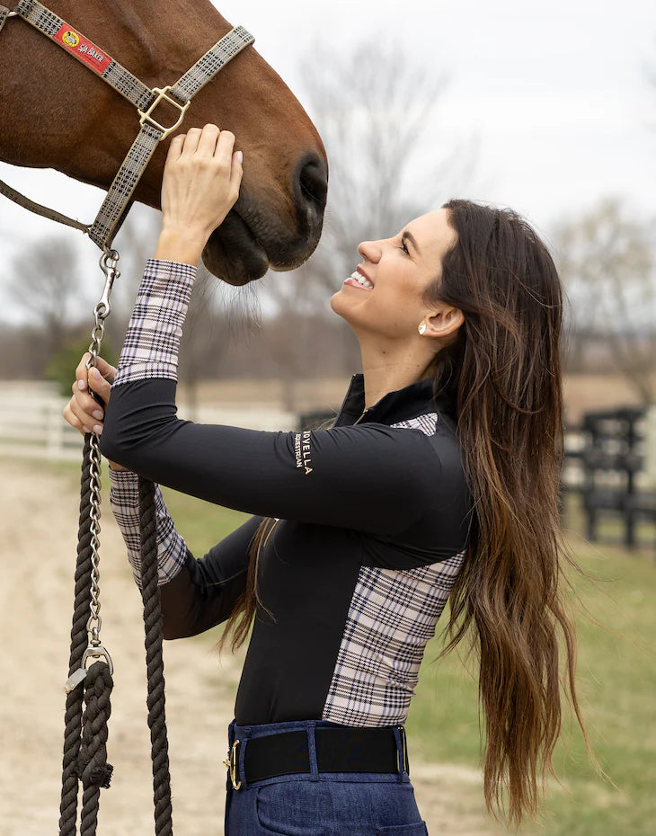 The Baker Black Long Sleeve sun-shirt features the iconic Baker plaid and a mesh underarm for breathability. The historic Baker logo is embroidered at the top back of the shirt and it features a 5/A Baker® branded zipper pull. With a deep quarter-zip and flattering lines, this shirt really highlights your equitation. True to size but adapts to your body’s changes - this top gives you a perfect fit every time. UPF 30+ for added ultra-violet protection.